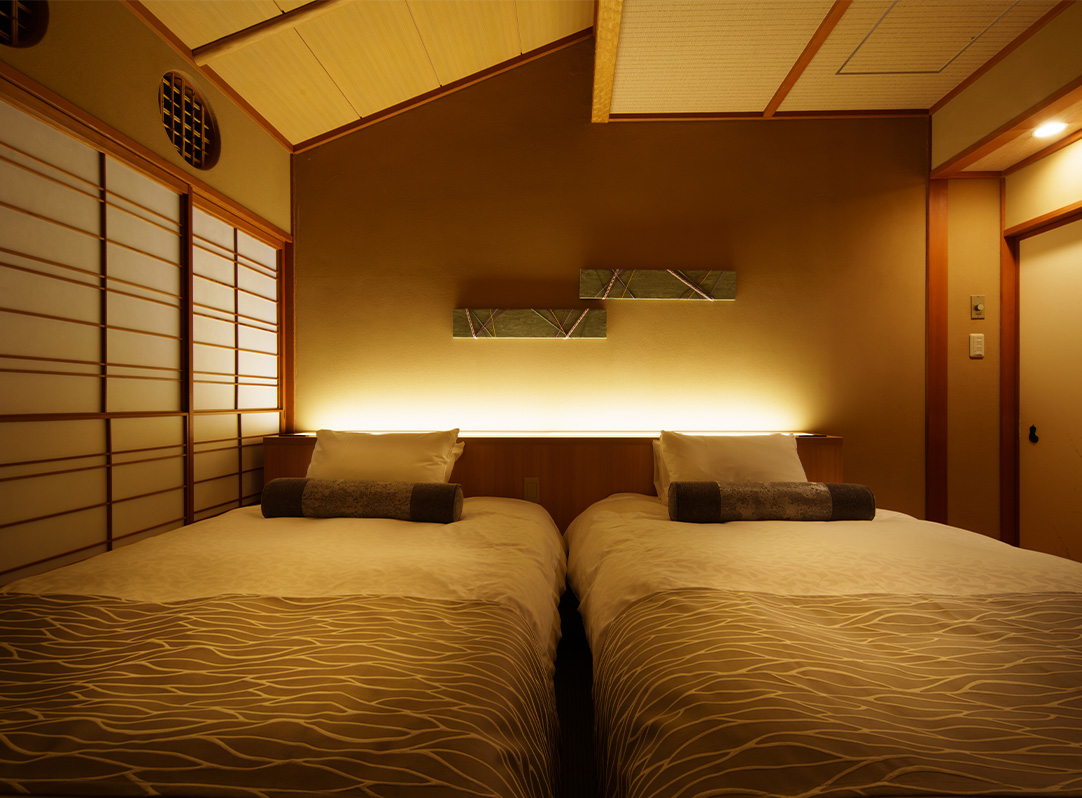 | 客室アメニティ | 歯ブラシセット、糸楊枝、綿棒、ボディウォッシュ、ヘアコーム、髭剃り、コットン(女性)、フェイスパック(女性)、 ヘアクリップ(女性)、ヘアゴム(女性)、シャワーキャップ(女性)、ハンドタオル、バスタオル、フェイスタオル、足拭きマット、 浴衣、作務衣、はんてん、ガウン、足袋、巾着、タオル用ビニール袋、浴衣籠、生理用品(女性)、ブーツキーパー(冬季)、 お茶セット(日本茶、紅茶)、ミネラルウォーター(無料)、掛けふとん、整圧敷きふとん、備長炭練込ビーズまくら |