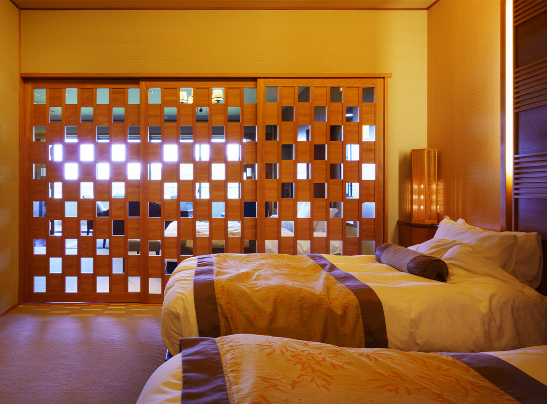 | 客室アメニティ | 歯ブラシセット、糸楊枝、綿棒、ボディウォッシュ、ヘアコーム、髭剃り、コットン(女性)、フェイスパック(女性)、 ヘアクリップ(女性)、ヘアゴム(女性)、シャワーキャップ(女性)、ハンドタオル、バスタオル、フェイスタオル、足拭きマット、 浴衣、作務衣、はんてん、ガウン、足袋、室内履きスリッパ、巾着、タオル用ビニール袋、浴衣籠、生理用品(女性)、ブーツキーパー(冬季)、 お茶セット(日本茶、紅茶)、ミネラルウォーター(無料) |